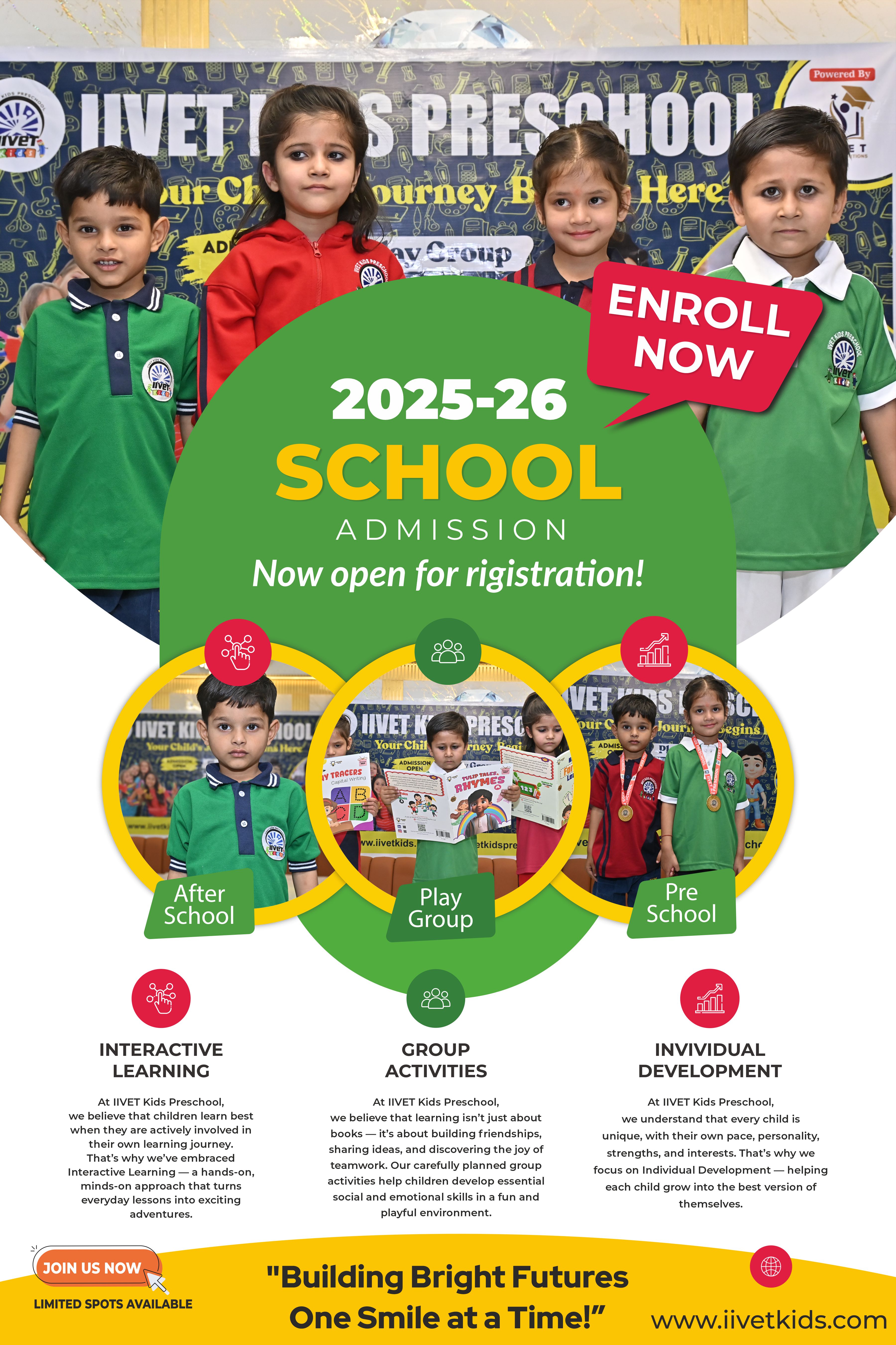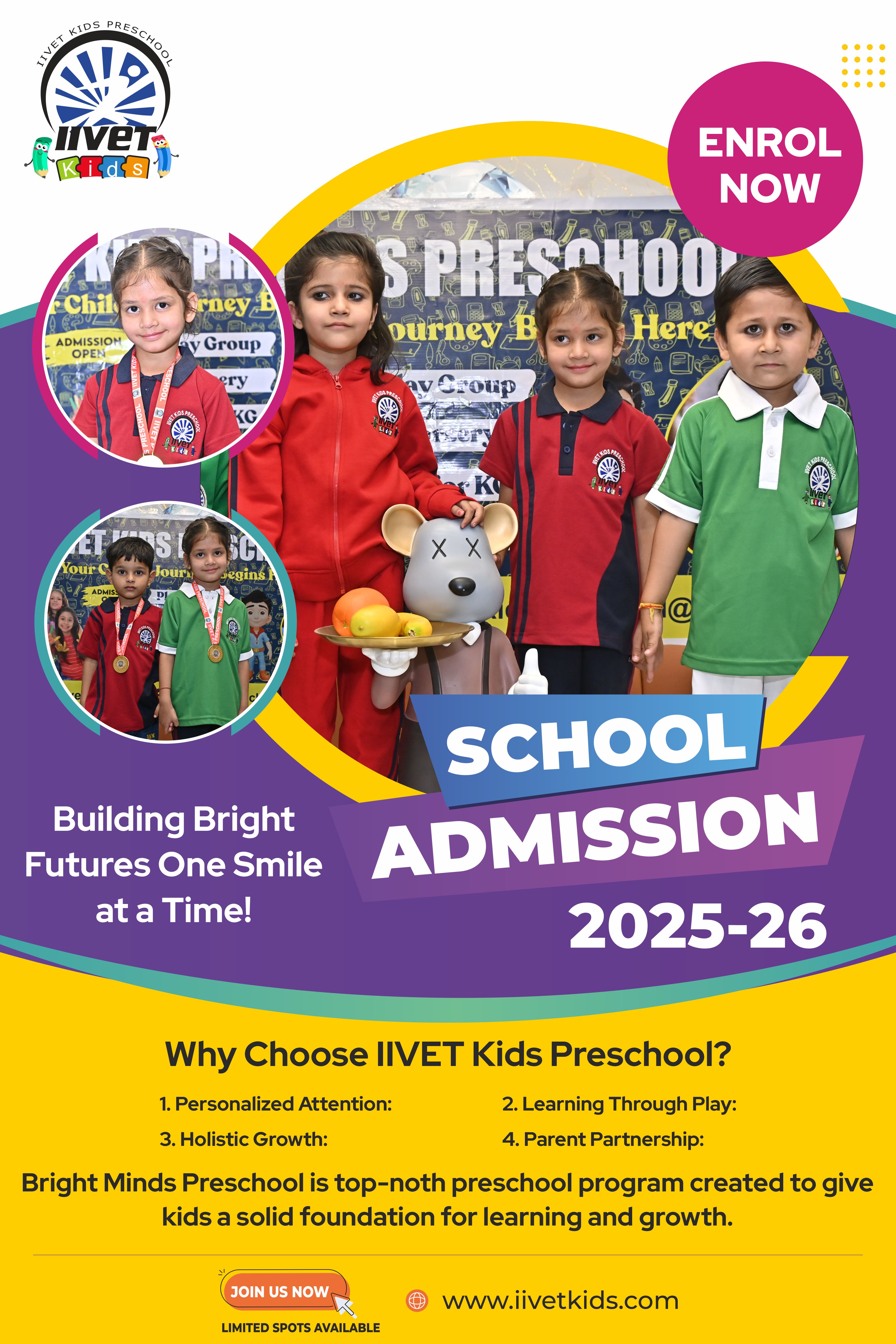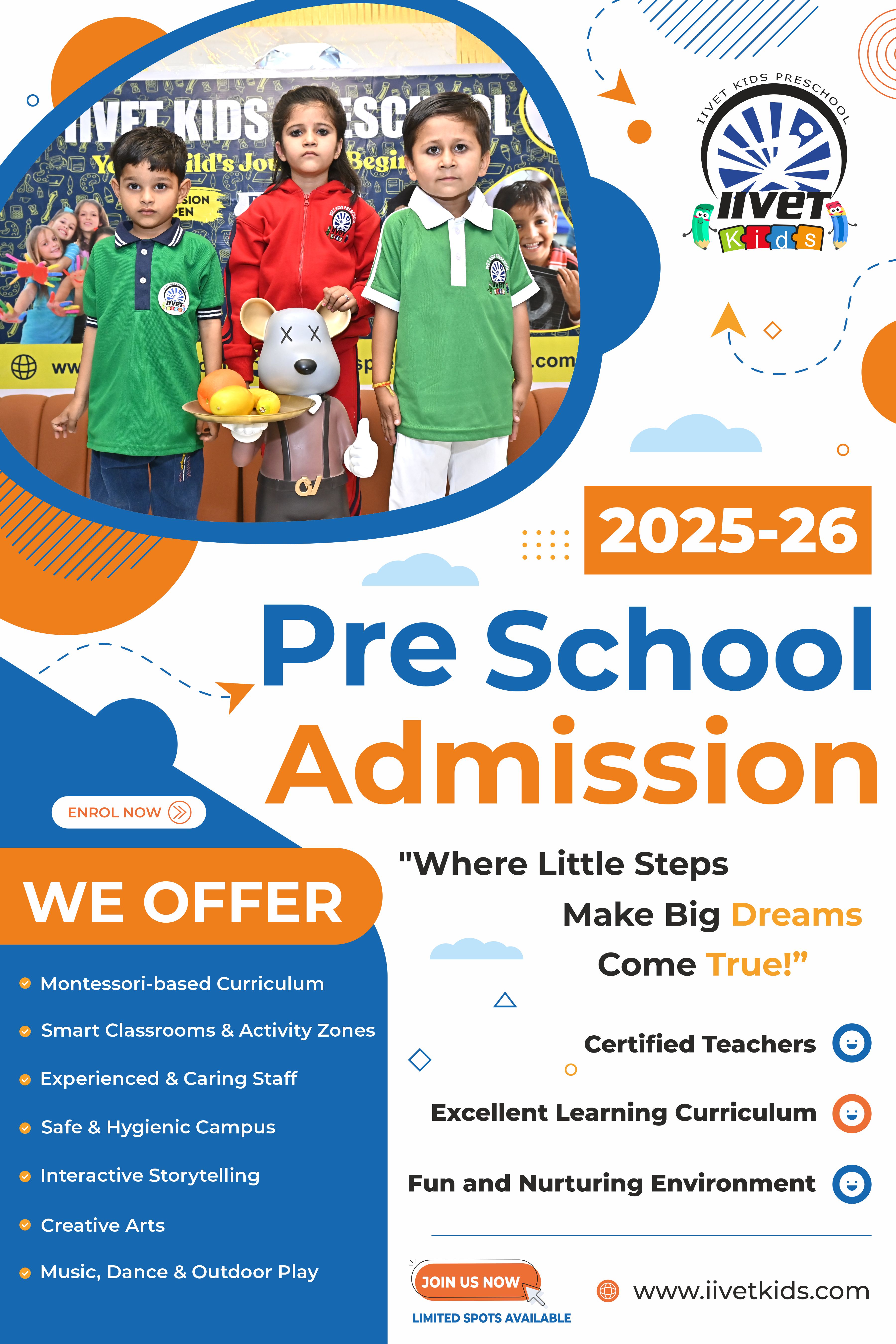 IIVET Kids Preschool Sponsored By “Education Live Foundation” Delhi (A Charitable Education Trust) An ISO 9001: 2015 Certified Accredited from Government of NCT Delhi (Regd. No. 4063) Under An Act 1882 Section 60 Govt. of India.